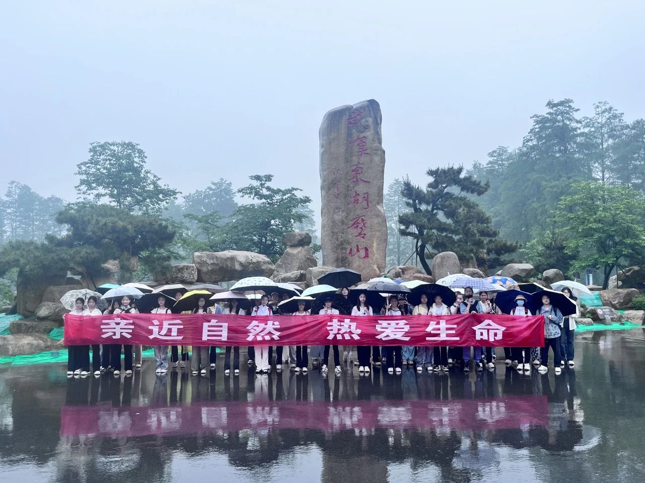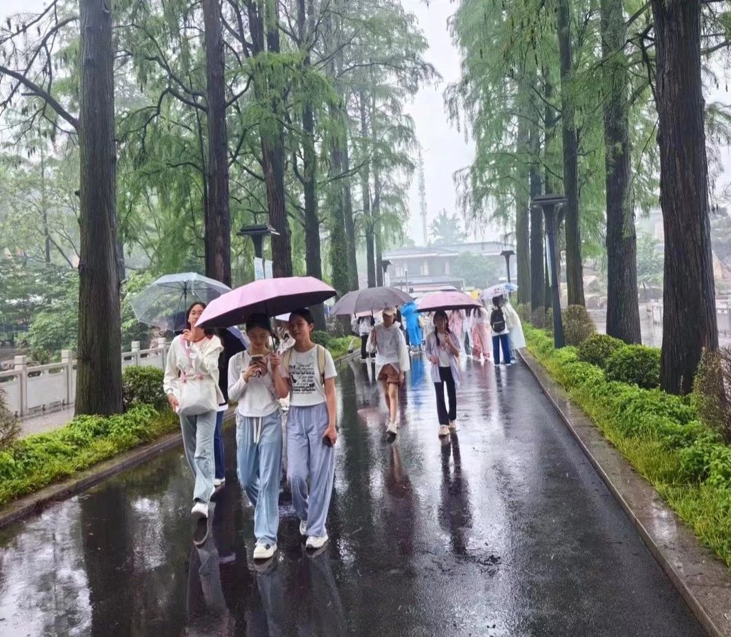一大早,“违约”而至的雨水,丝毫没有放慢大家奔赴大自然的脚步。抵达磨山景区后,目之所及皆是翠绿茸茸,耳之所闻皆为鸟鸣啁啁。雨水为这片大地增添了几分神秘与别样的生机。学生们如一群小探险家,班级合影后,就快速奔赴眼前的美景,体会雨水带来的清新与宁静,尽情享受雨中漫步的闲适与自由。