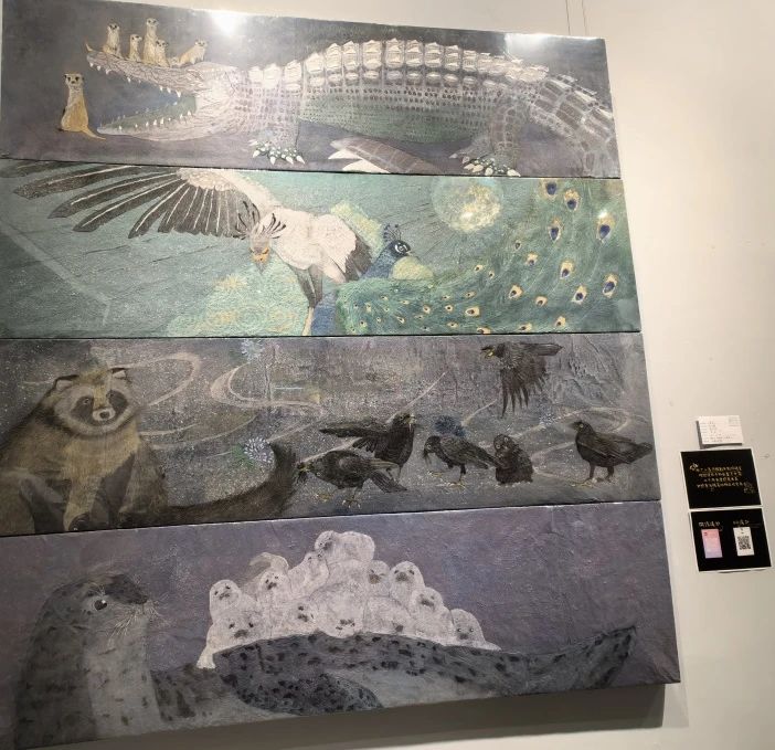 这次湖美毕业作品展中海豹和鳄鱼的两幅尤为引人注目。海豹画作展现了它们在海面,那圆润的身躯、灵动的眼神,无不透露出一种宁静与和谐。而鳄鱼作品则展现了它们独特的生存智慧与力量,尖锐的牙齿、强健的躯体,刻画出鳄鱼冷酷而坚韧的一面。
