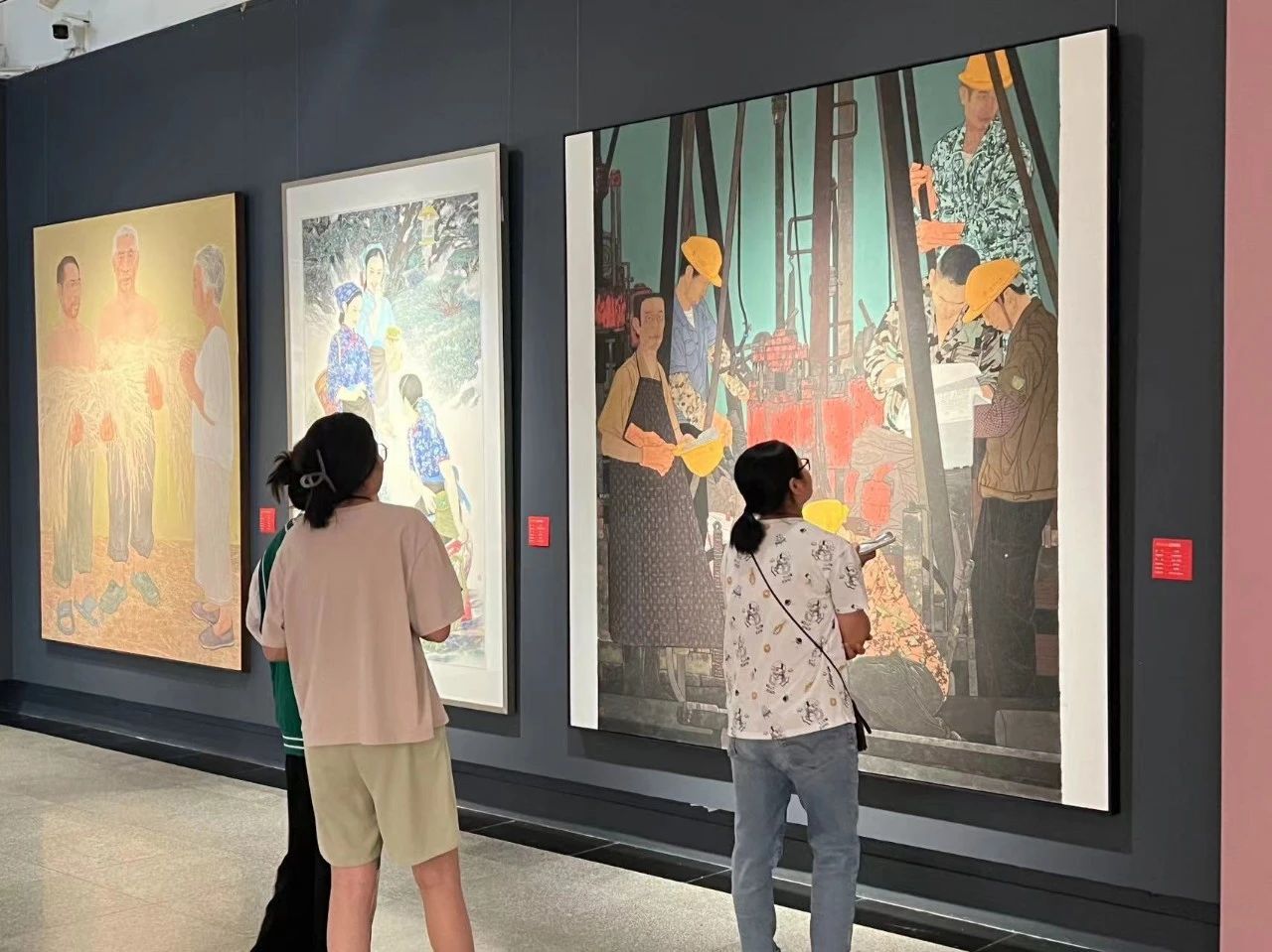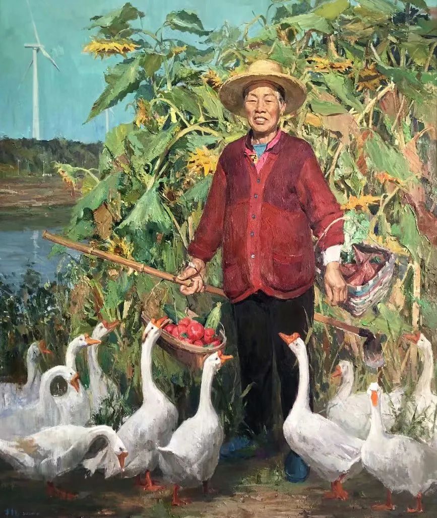 期间,我被一幅《幸福时光》油画作品吸引。这幅作品是以自己家人为原型创作的一件现实主义油画,画面中淳朴善良的人通过辛勤劳动创造美好的幸福生活,我感受到了画中蕴含的强烈的情感与形象所传达的精神力量。
