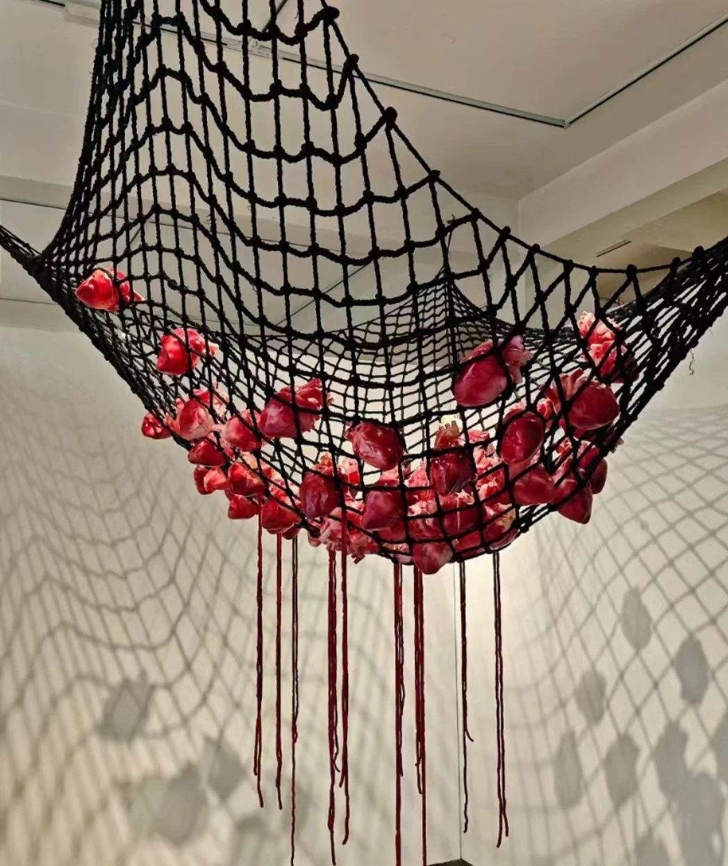 此外一件大型装置艺术作品也让我印象深刻。它由多种颜色的毛线缠绕在一个金属架子上,给人一种温暖与冷漠对比的强烈感受。这件作品独特的审美视角非常新颖,启发了我对现当代艺术的好奇与探索。